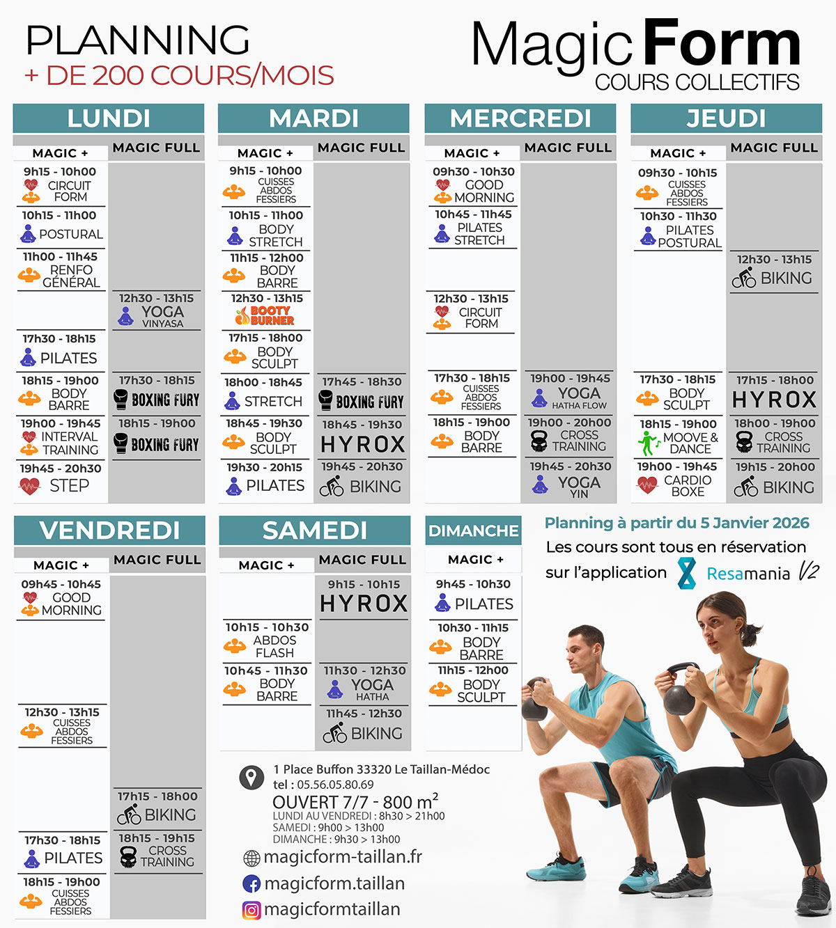 Planning à partir du 05 Janvier 2026