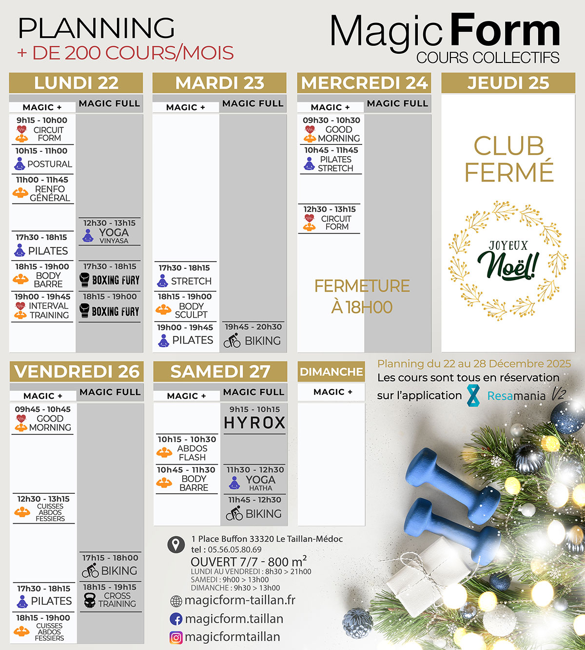 Planning du 22/12 au 28/12/2025